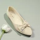Step into effortless elegance with these cream-toned ballet flats. Featuring a sophisticated almond-toe silhouette and a soft, matte finish, these shoes are designed for the modern romantic. The highlight is the oversized, structured textile bow adorned with a delicate crystal butterfly embellishment, adding just the right amount of sparkle to your stride. Whether paired with a flowing lace midi dress or cropped trousers, these flats bring a polished, feminine touch to any ensemble.
