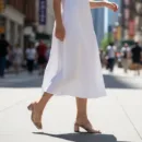 Modern and minimalist block heel sandals with clear straps and a nude block heel. These slip-ons add a contemporary edge to any summer dress or casual city look, offering both comfort and a trendy barely-there effect.