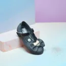 Dress up tiny feet with a touch of playful elegance! The Charcoal Bow Mary Janes feature a soft grey finish with a glossy black strap and a cute bear-accented bow. Perfect for parties, family outings, or everyday chic looks, these shoes combine style with comfort to keep your little one happy all day.