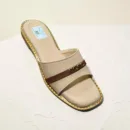 These elegant slides blend casual comfort with high-end aesthetic, making them a versatile staple for any summer wardrobe. The neutral tones and metallic accents provide a sophisticated touch to a classic slip-on silhouette.