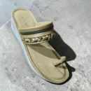 Elevate your daily style with these elegantly crafted toe-ring wedge sandals. Featuring a sophisticated dual-tone beige and charcoal palette, these sandals showcase a unique braided strap detail that adds a touch of traditional charm to a modern silhouette. The cushioned footbed and sturdy wedge heel provide the perfect balance of height and comfort, making them ideal for long hours of wear at work, family gatherings, or casual outings.