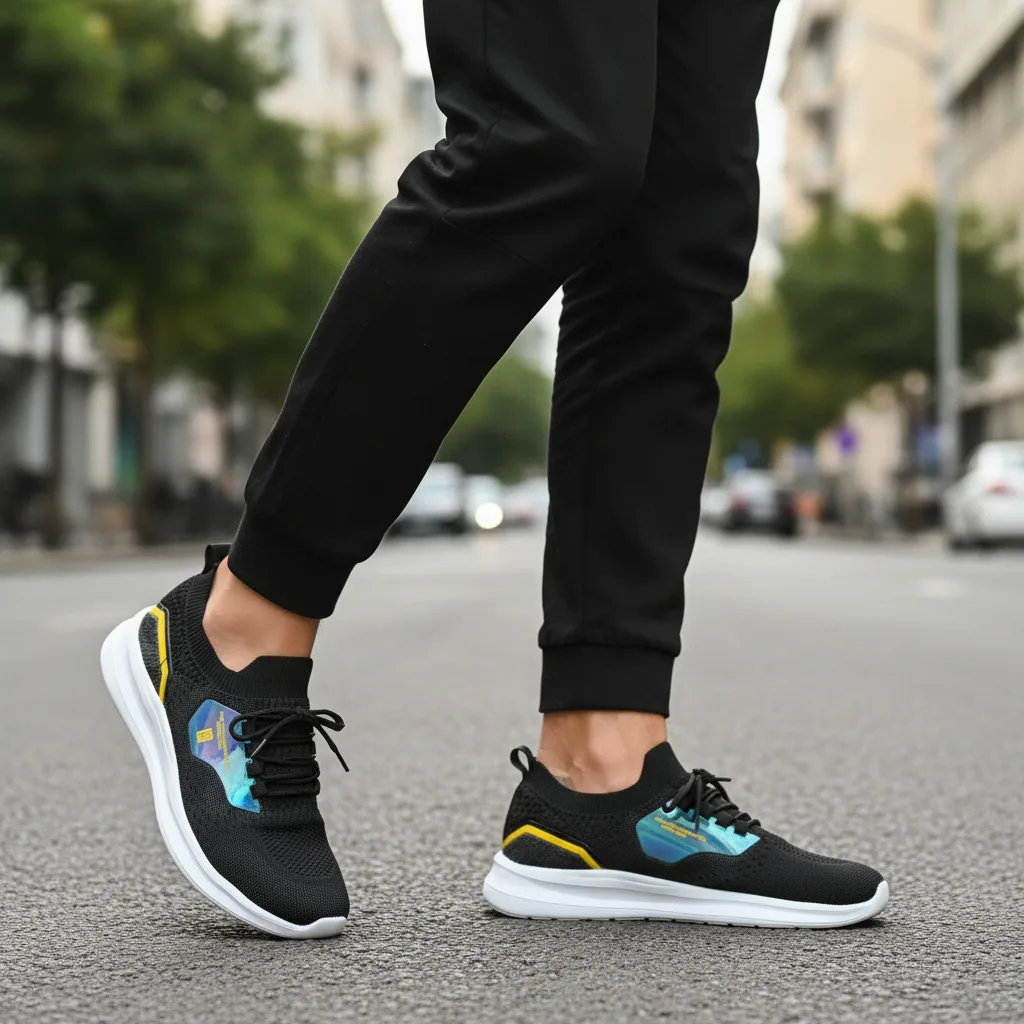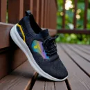 Step into the future of street style with the LuminaStride Urban Knit. These sneakers are designed for the modern commuter who refuses to sacrifice comfort for aesthetics. Featuring a lightweight, breathable 3D knit upper, they provide a snug, sock-like fit that adapts to your foot’s movement. The sleek black silhouette is accented by a vibrant iridescent side panel that shifts colors in the light, ensuring you stand out whether you’re on a morning walk or hitting the city streets at night.