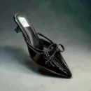 Step into effortless sophistication with these stunning black patent mules. Designed for the modern woman who values both style and comfort, these shoes feature a sleek pointed toe and a delicate bow accent that adds a touch of feminine charm. The modest kitten heel provides just the right amount of lift for all-day wear, making them a versatile staple for your wardrobe—transitioning perfectly from a polished office look to a chic evening out on the town.
