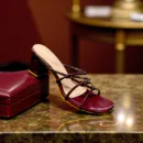 These striking ladies’ sandals stand out with glossy wine red finish and a modern strappy design, set atop a comfortable block heel. The open-toe, slip-on style is both glamorous and practical for all-day wear at brunches, casual events, or evening outings, adding a bold yet elegant pop of color to dresses and neutral looks.