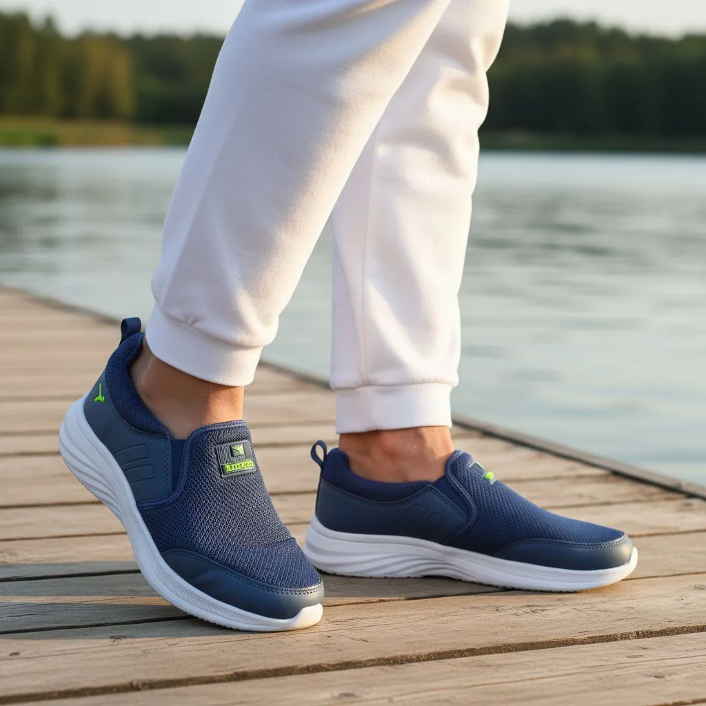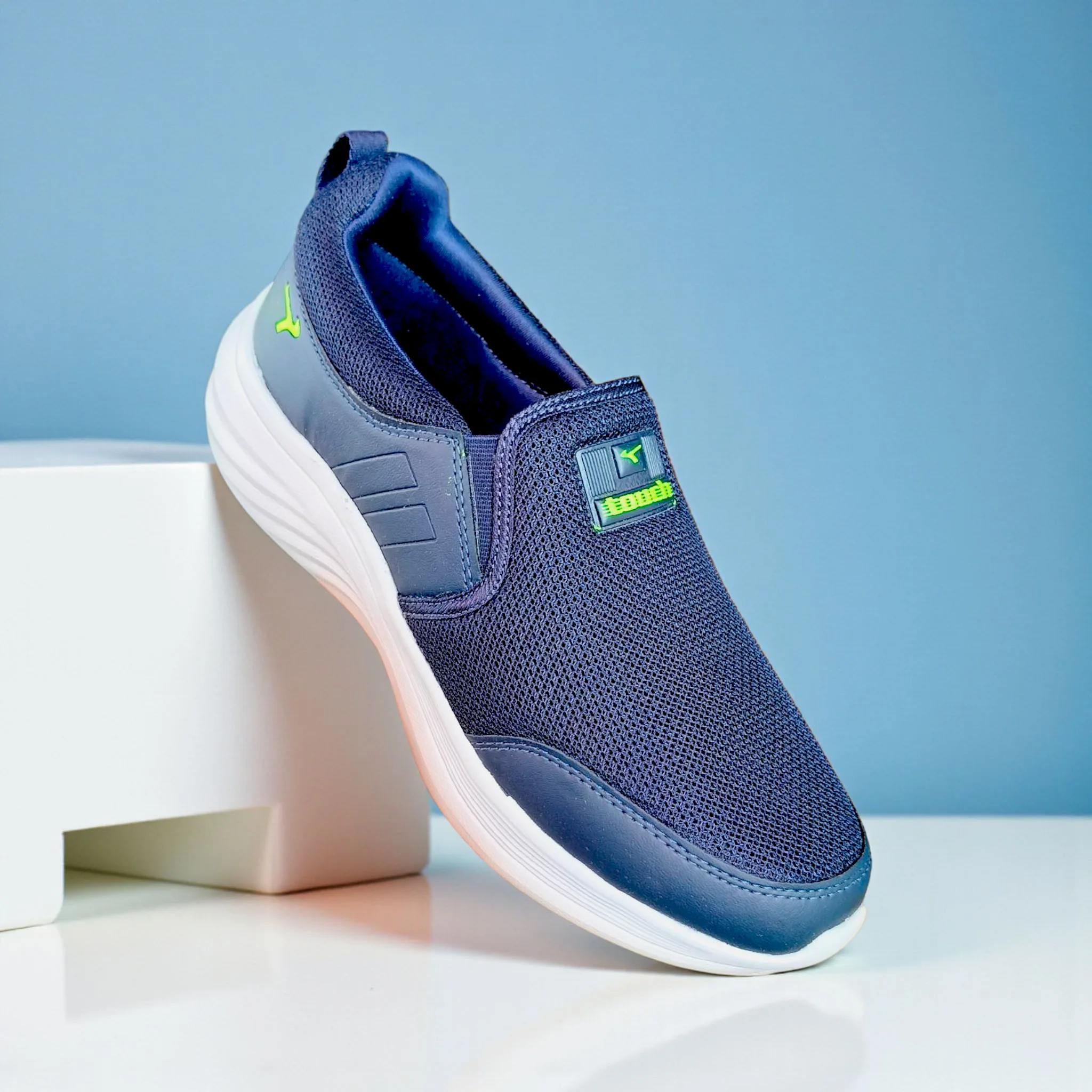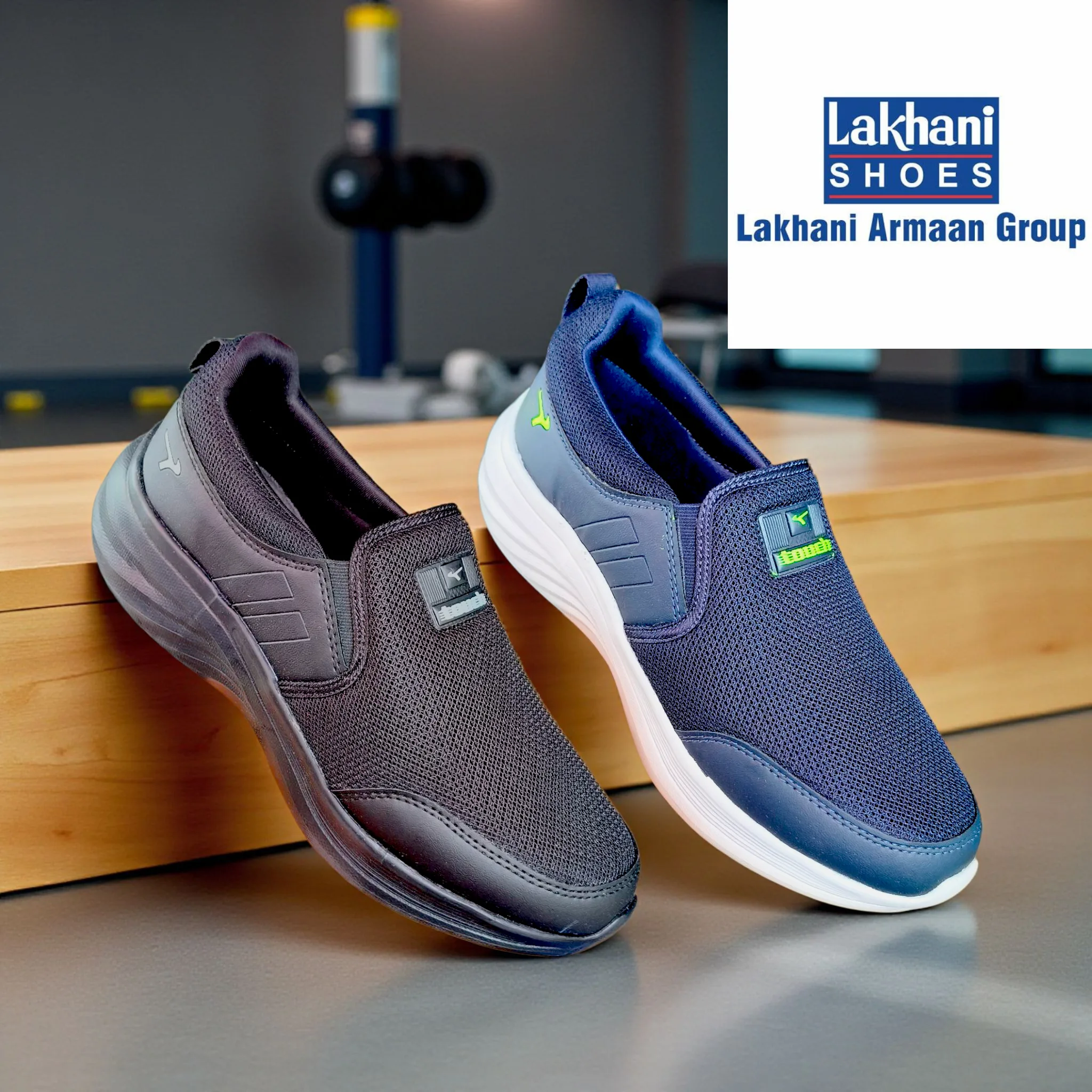 These Lakhani slip-on shoes for men offer sporty convenience and comfort, available in a blue/white or black/grey colorway. Designed for walking, gym, or casual use, they feature a breathable mesh upper, padded insole, and a lightweight flexible sole for easy, everyday wear..