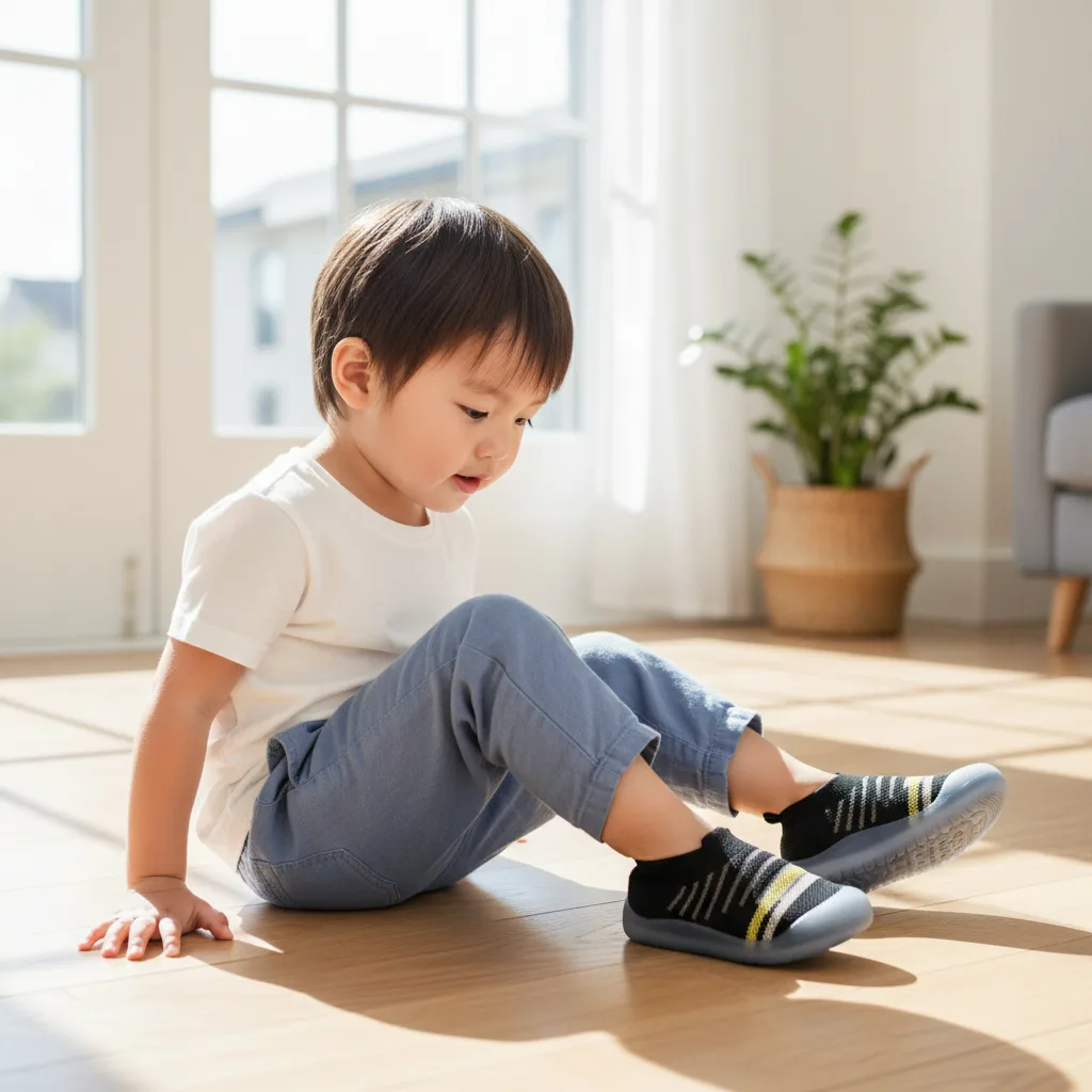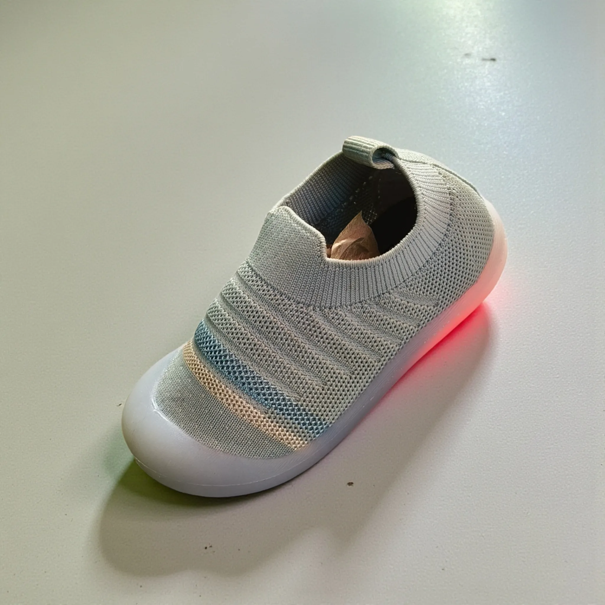 Modern stripe-knit slip‑on shoes that feel as soft as socks but protect like sneakers, perfect for active toddlers indoors and outdoors. The flexible sole and snug, stretchy upper keep little feet supported while they crawl, cruise, and run around.