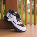 These men’s sneakers feature a bold black-and-white design, blending athletic inspiration with urban style. Constructed with a chunky sole, mesh panels for breathability, sturdy overlays, and a distinctive “VIP” label detail, they are perfect for streetwear, walking, or sporty daily looks.