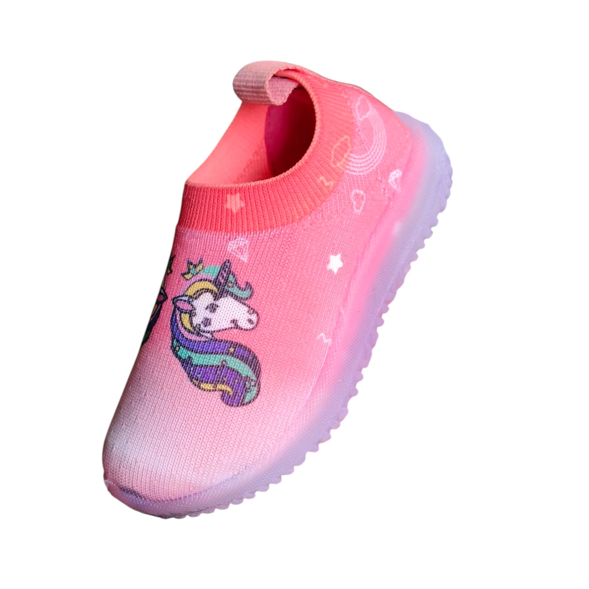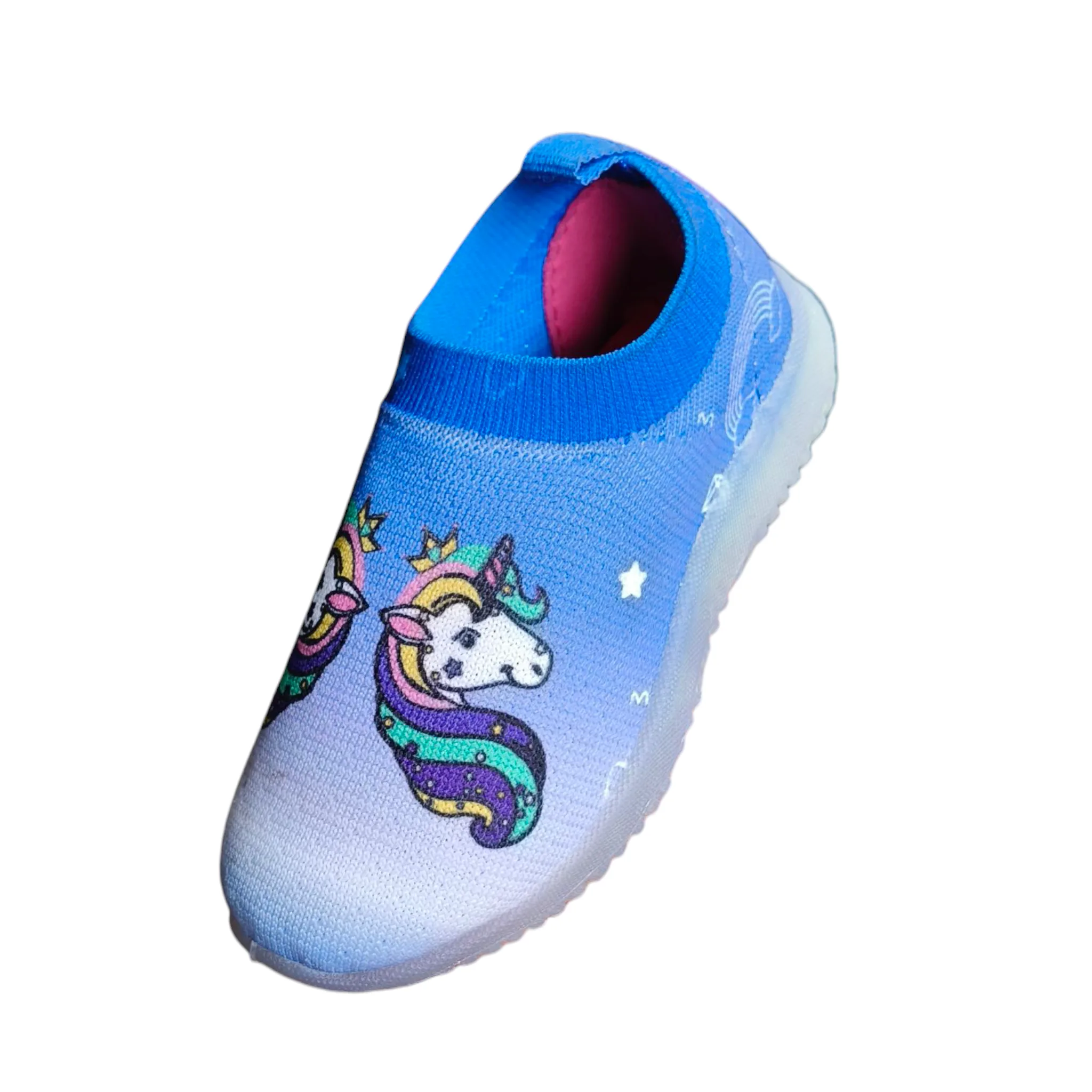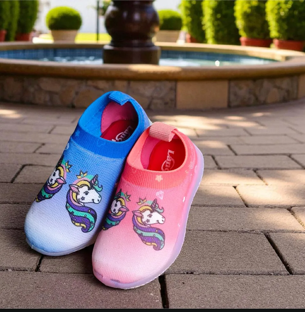 Bring color, comfort, and magic to every step with these Rainbow Unicorn slip-ons! Designed in cheerful blue and pink shades, they feature a cute unicorn print that kids will absolutely love. Easy to wear and super comfy, they’re perfect for playtime, outings, and daily adventures.