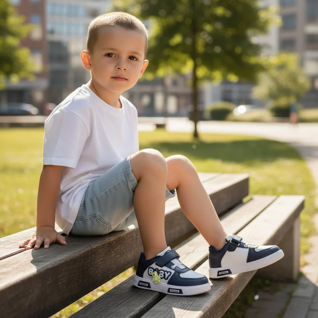 Playful everyday sneakers for kids featuring a cute teddy charm and bold “BABY” side detail, perfect for park outings, play school, and casual city strolls.