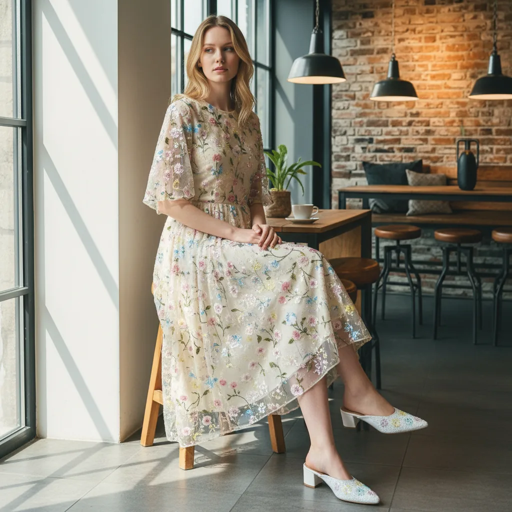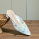 This enchanting mule combines delicate artistry with a clean, modern silhouette. Designed for garden parties, spring weddings, or any occasion that calls for a touch of whimsical romance, it is the perfect companion for airy, floral-printed attire.