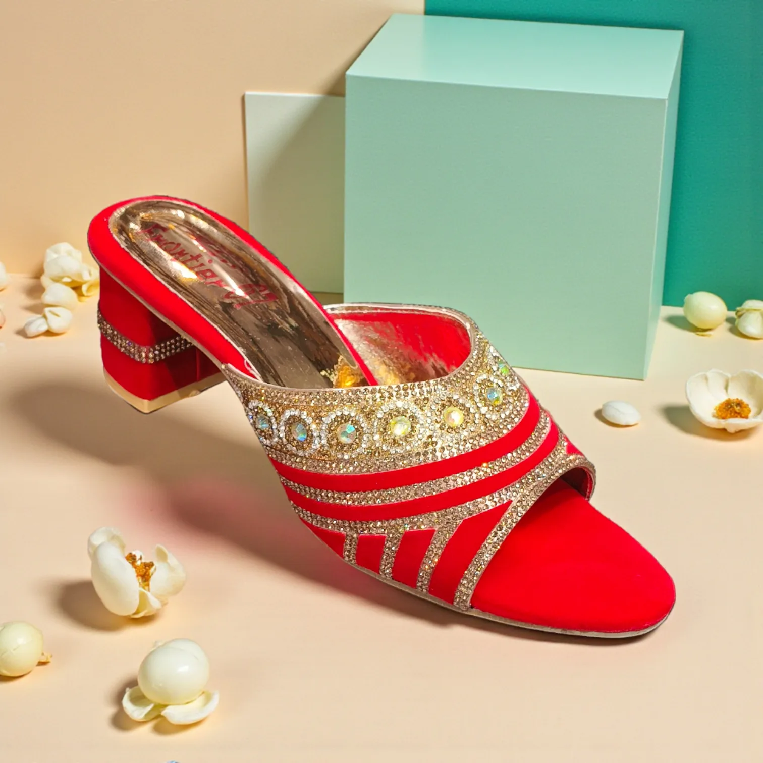 Luxe Materials: Crafted with a soft red textile upper and a polished gold-tone inner sole for a premium aesthetic.