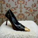 Premium glossy black finish, sharp pointed toe with metallic golden tip, and elegant high heel make this shoe perfect for women who love bold, luxury-inspired fashion.